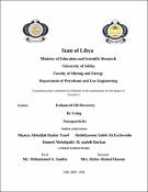 Item Enhanced Oil Recovery By Using Nanoparticles(Sebha University, 2018) Abdelkareem Saleh Ali Eschweido, Moataz Abdullah Bashir Yusef Hamed Abdulqadir Al. mahdi BurkanThere are three types of oil production energy operations, primary recovery, secondary recovery and enhanced oil recovery (EOR). EOR consider as the last stage for production operations. Where the EOR classify into many types such as gas injection, thermal injection, microbial EOR and chemical flooding. There are many types of chemical flooding such as polymer, surfactant, alkaline and nanoparticles EOR such as Iron Oxide (Fe2O3), Aluminum Oxide (Al2O3) and Magnesium Oxide (MgO) etc. In this study used Nanoparticles EOR Aluminum oxide (Al2O3). Nanoparticles EOR Aluminum oxide (Al2O3) used a spontaneous imbibition test for sandstone core samples after saturated of crude oil. A spontaneous imbibition test consisting of two scenarios of nanoparticle solution (Al2O3) with change temperature and compared with one scenario of distilled water. The spontaneous imbibition test was performed in this study at room temperature to oven temperature (30Co, 40Co, 50Co, 60Co, 70Co). The results shown that the process of improving the oil increases with the increase of the concentration of nanoparticle (Al2O3) and increase the temperature where the rate of oil recovery mixture with nanoparticles (Al2O3) at the concentration of 1% of nanotechnology is 76.04%.